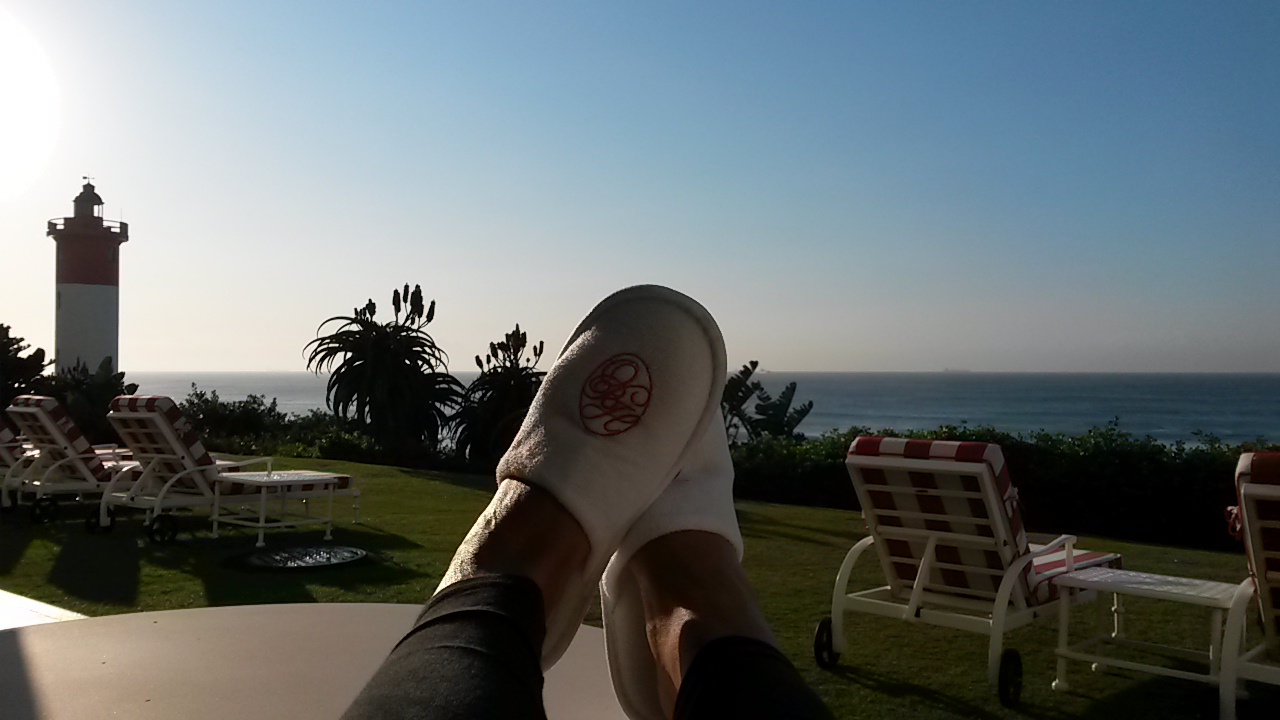 The big four poster bed was quite something to behold, but what got me was the deep blue ocean which would be my view. I quickly headed for the arched double doors to open them and breathe in the sweet smell of the sea, and fresh air and sunshine. And yes, I really believe I could smell the sunshine…and that’s because it shines in Durban, even in winter.