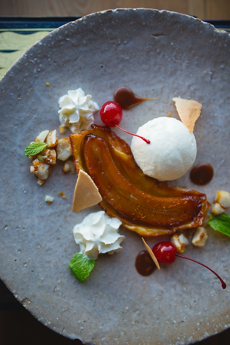 Ending on a sweet note, the dessert menu features classics such as a Banana Split of caramelised banana in puff pastry, macadamia nuts, milk ice cream and maraschino cherries (R60) or Salted Chocolate Tart (R65) served with crème fraîche.